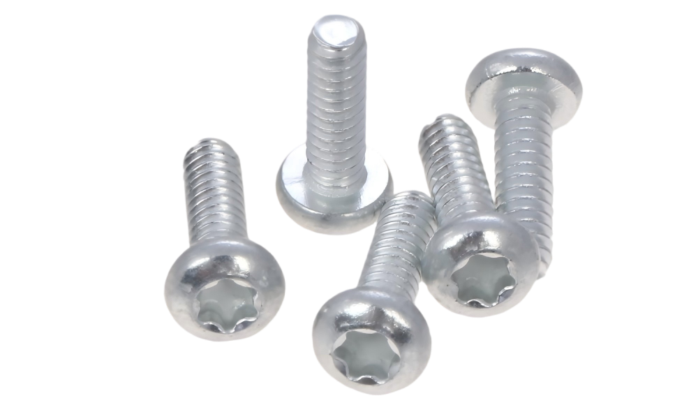SUS304 stainless steel machine screw, M4×10mm, with passivation for enhanced corrosion resistance. Features a pan head and dual Torx-triangular drive for secure, anti-slip installation. Hardened for strength, ideal for machinery, electronics, and precision assemblies needing reliable, durable fastening.